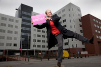 “Ik denk dat veel mensen zich verstoppen. Ik ben er even niet, denken ze. Deels heeft dat met de economische crisis te maken, maar we zijn ook gewoon afgegleden naar een materialistische wereld. Het is ieder voor zich, hebben hebben hebben in plaats van zijn zijn zijn. Er heerst veel angst, onzekerheid en gebrek aan perspectief. Ik voel dat nu de tijd is om onze eigen verantwoordelijkheid terug te pakken. En daarin kan plezier een leidende rol spelen. We moeten ons weer gaan verbinden met elkaar.”